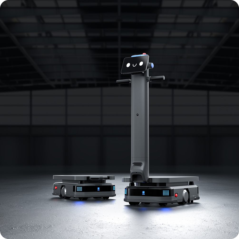 La gamme PUDU T regroupe des robots de livraison professionnels robustes, capables de transporter jusqu’à 600 kg en milieu industriel.